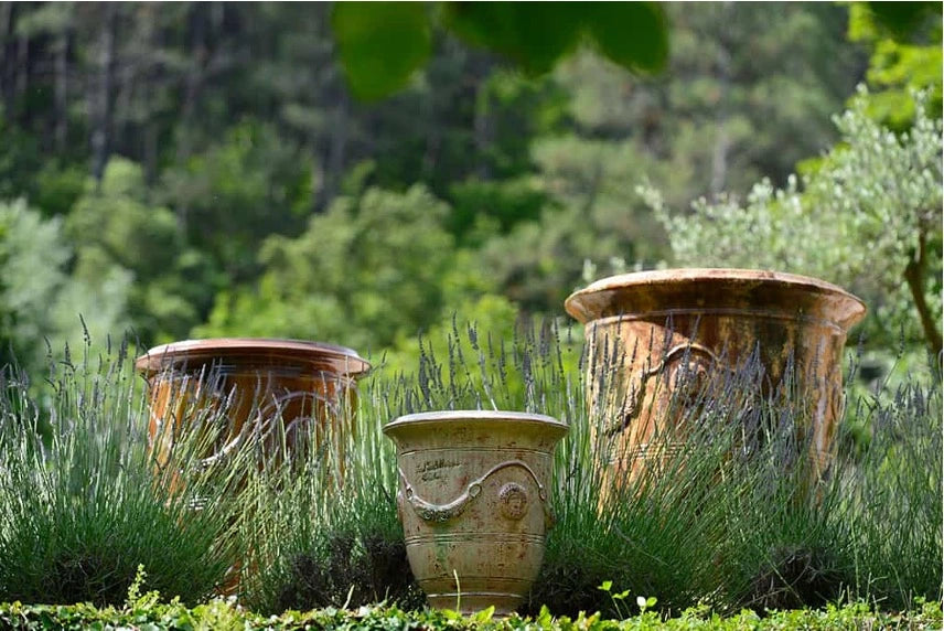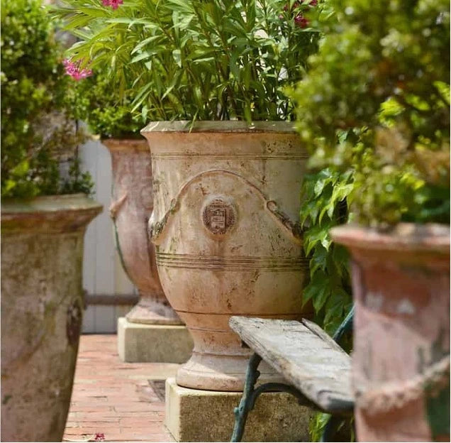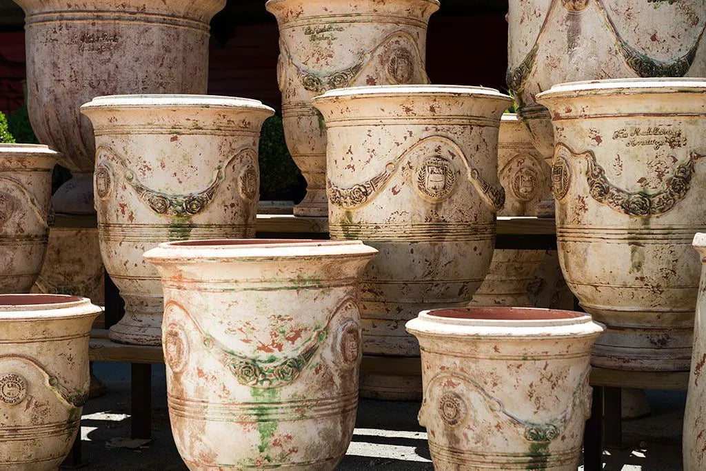 Back in the 17th century the Italian Medici-style pottery inspired this shape. It was first created in the town of Anduze, featuring a bell shape with garlands and medallions. Traditionally used to adorn gardens and orangeries, it became a symbol of French elegance and craftsmanship